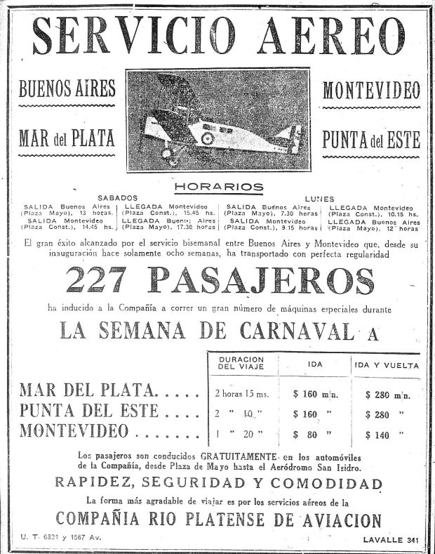 la Compañía Rioplatense de Aviación ofreció por primera vez en la